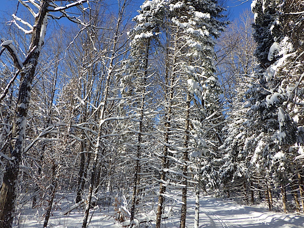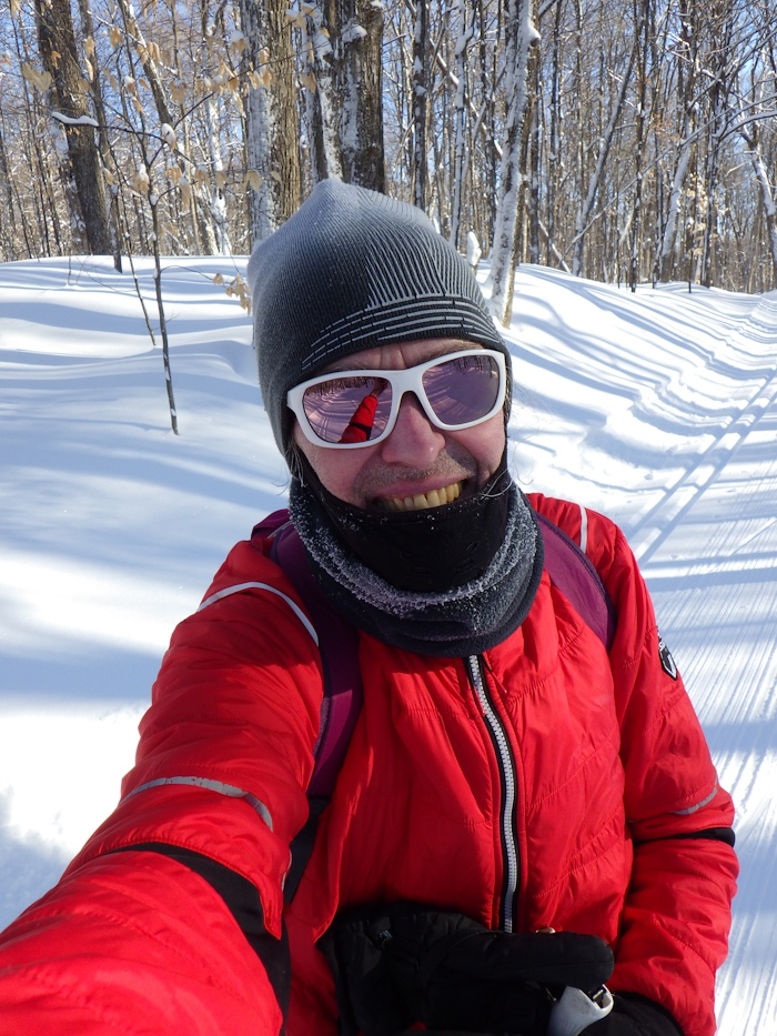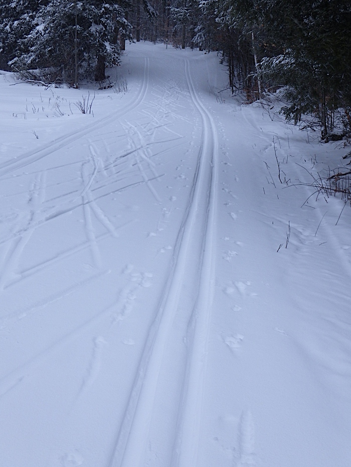 Today's solo ski was 7.4 km from P19 to Renaud Cabin on Trail 5 and then back on Trail 51 along the power line.